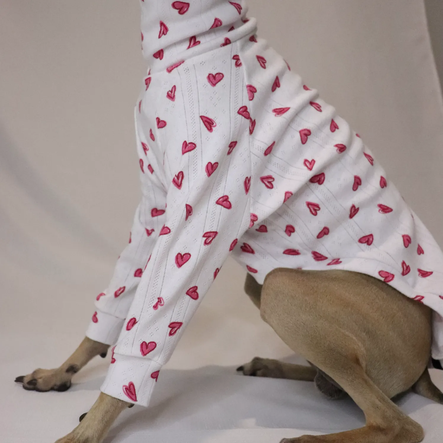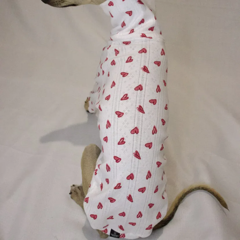 The Be Mine Half Suit is made for cuddles, naps and everything in between. Crafted from a thin, super-soft pajama-style fabric, it’s lightweight, breathable and perfect for warmer days or cosy nights. Finished with a charming love heart print, this piece is as cute as it is comfy.