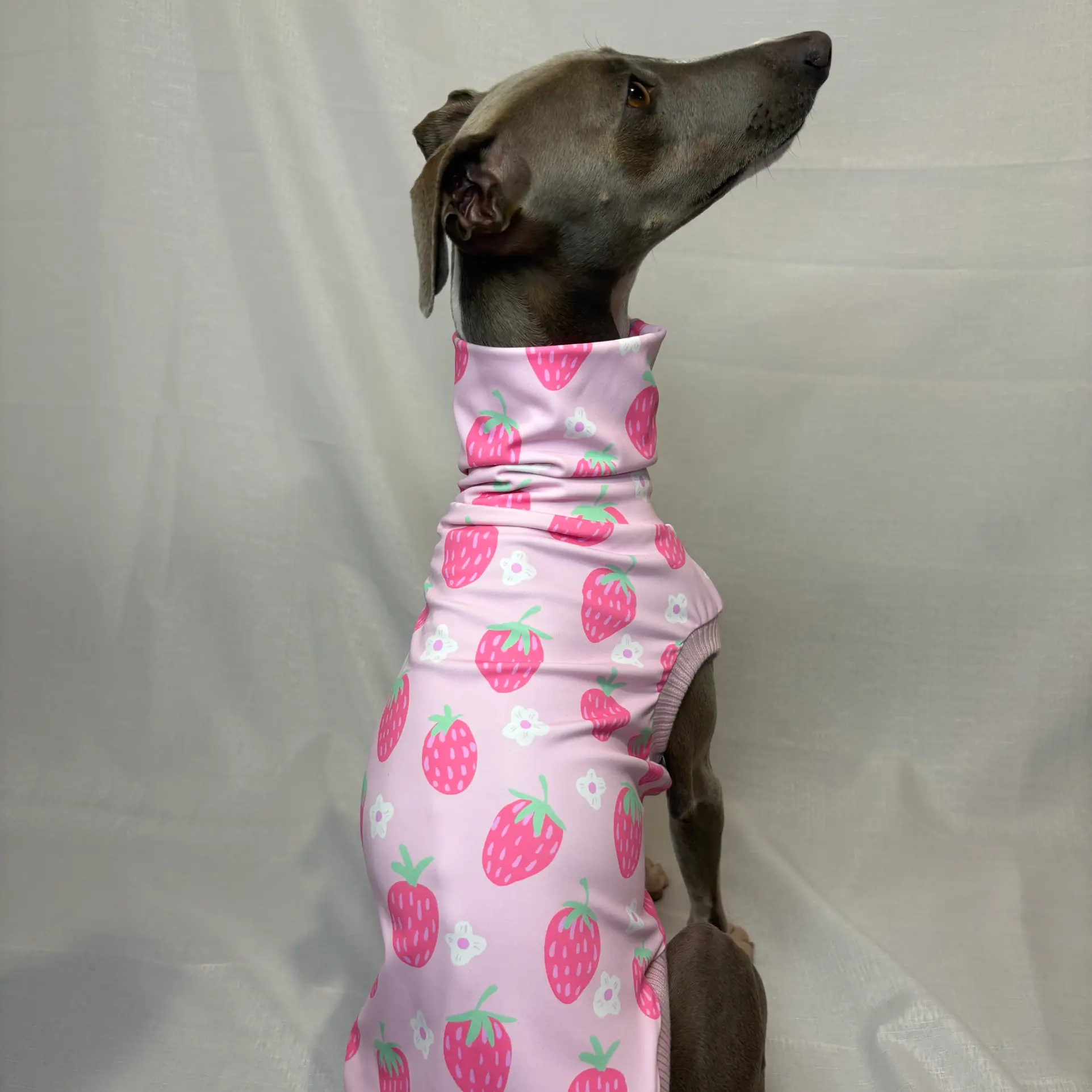 Sweet, sun-safe, and made for summer sass. Strawberry Shortcake is the ultimate SPF 50+ swimmer for sighthounds who like to make a splash and steal the spotlight.