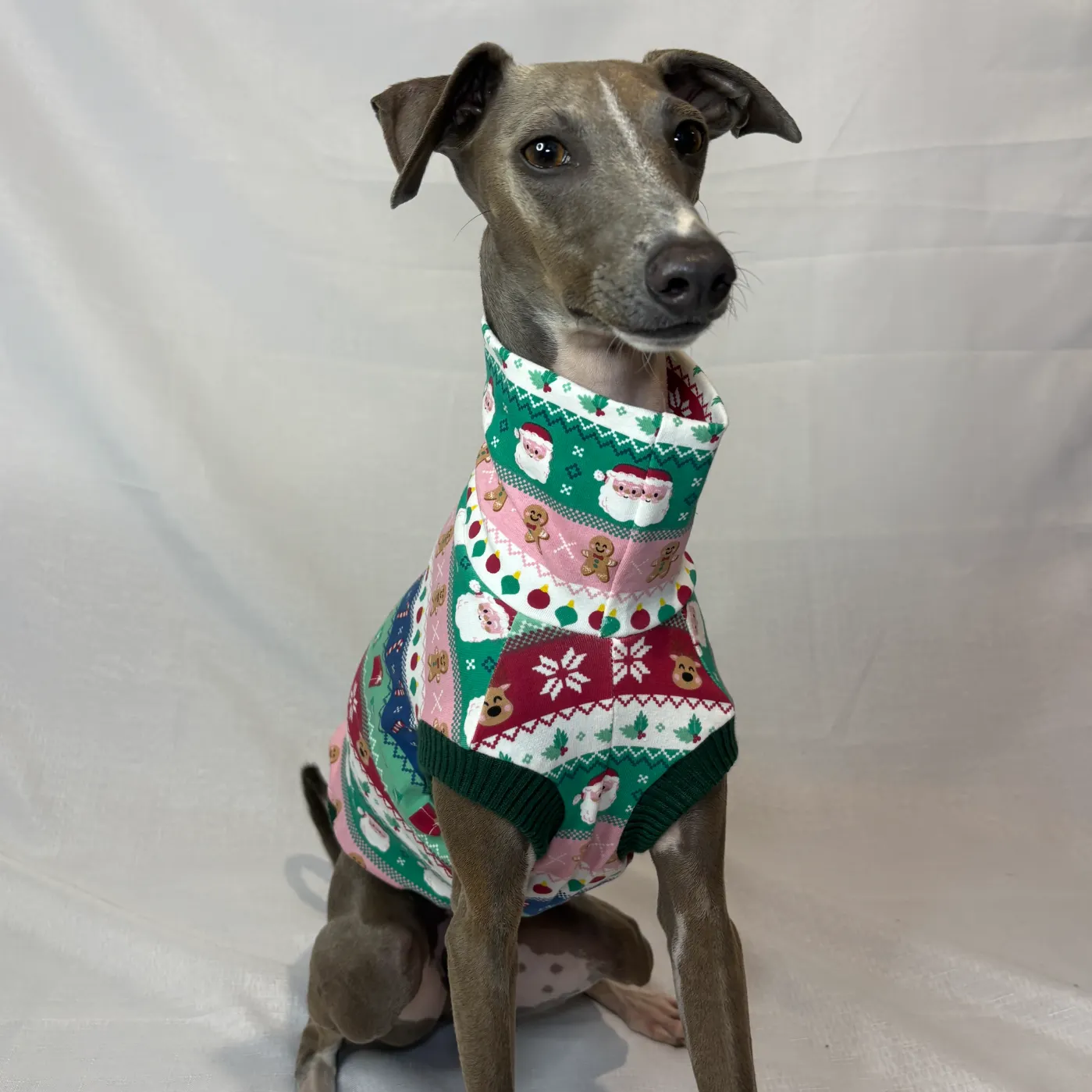 Made lightweight so your sighthound won’t roast like a Christmas ham, it’s the paw-fect mix of comfort and comedy. Whether they’re slaying under the tree, photobombing family pics, or just living their best “naughty list” life — this outfit guarantees maximum giggles and howl-iday cheer.